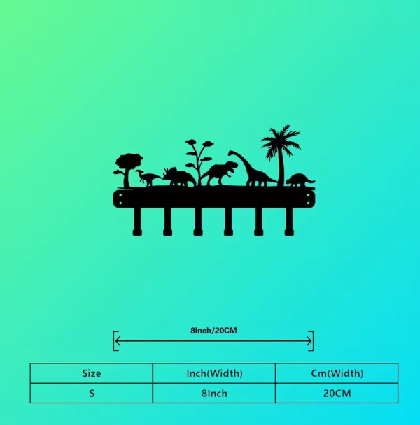 Breng de oertijd tot leven in huis met deze stoere metalen dinosaurus wandhaak van 20 cm. Het silhouet van verschillende dino’s en palmbomen geeft een speelse, unieke uitstraling die perfect past in een kinderkamer, speelkamer of als opvallend accent in de hal.