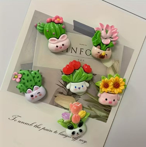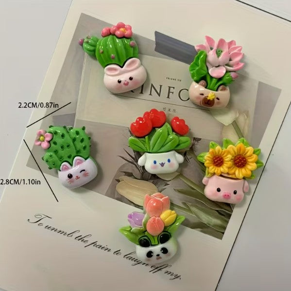 Breng kleur en vrolijkheid in je interieur met deze 6-delige set koelkastmagneten in de vorm van schattige dieren met zonnebloemen. Elk figuurtje is zorgvuldig vormgegeven in duurzaam resin en voorzien van een sterke magneet. Perfect voor het ophangen van notities, foto’s of als decoratief accent in keuken, kantoor of klaslokaal.