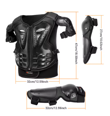 Rijd veilig en vol vertrouwen met deze complete motorcross beschermingsset. Deze body armor is ontworpen voor maximale bescherming tijdens motorcross, pitbike, enduro of downhill rijden. De set bestaat uit een stevig beschermvest met geïntegreerde borst-, rug- en schouderbescherming, plus losse elleboog- en kniebeschermers.