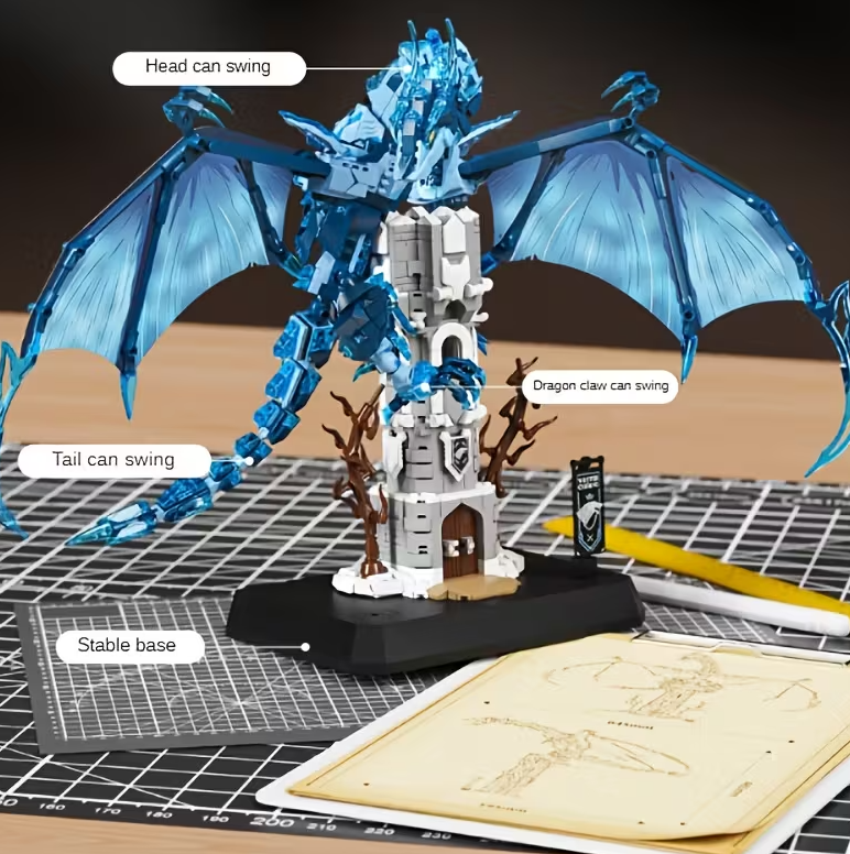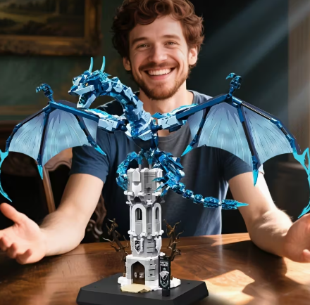 Laat je innerlijke bouwer los met deze epische drakenbouwset. Met meer dan 1700 onderdelen bouw je een majestueuze ijs- of vuurdraken die bovenop een middeleeuwse toren troont. Perfect voor fantasyfans, verzamelaars en creatieve volwassenen.